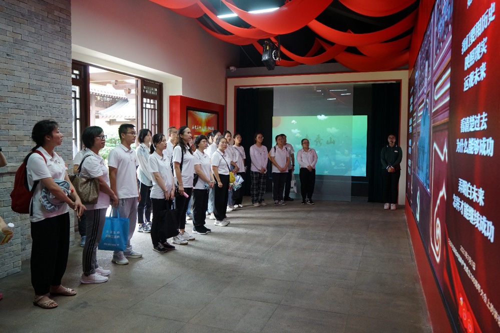 随后,在讲解员的带领下,全体师生党员干部先后参观了中国共产党人精神谱系主题园和廉洁文化主题园。在中国共产党人精神谱系主题园,通过穿插互动点播屏、全息投影系统等,以全新的视角、沉浸式的体验重温了中国共产党人百年奋斗史,深刻感悟了中国共产党人在不同历史时期奋斗中淬炼成的伟大建党精神。在廉洁文化主题园——竹园中,通过参观清廉名人典故雕塑、廉政楹联等,大家进一步加深了对廉洁思想的理解体会。