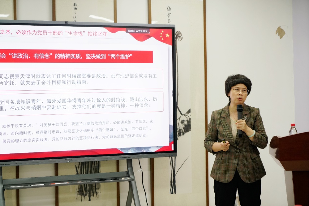 马秋平围绕《绝对忠诚 敢于担当 作风正派 干净廉洁——争做忠诚担当正派廉洁党员干部》主题进行授课。她强调,绝对忠诚是每位党员的底线,是从政之本,党员干部要时刻保持对党的绝对忠诚,将其视为“生命线”来履行自己的职责使命;敢于担当是每名党员的应尽之责,党员干部要挑起重担,争做先锋,成为党的事业的积极参与者和推动者;作风正派是党员的基本素养,党员干部应该时刻保持高尚的政治道德风范;干净廉洁是立身之本,成事之基。党员干部要常怀廉耻之心,严守廉洁底线,始终保持清正廉洁的政治本色。