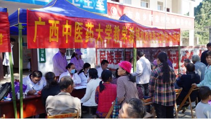 为进一步助力乡村振兴工作,11月29日,广西中医药大学党委常委、副校长钟宏桃率领教学教辅机构党委和基础医学院党委师生党员代表赴隆安县布泉乡新盏村开展主题党日活动,为新盏村村民中医健康诊疗、宣传普及中医药文化和卫生防病知识。