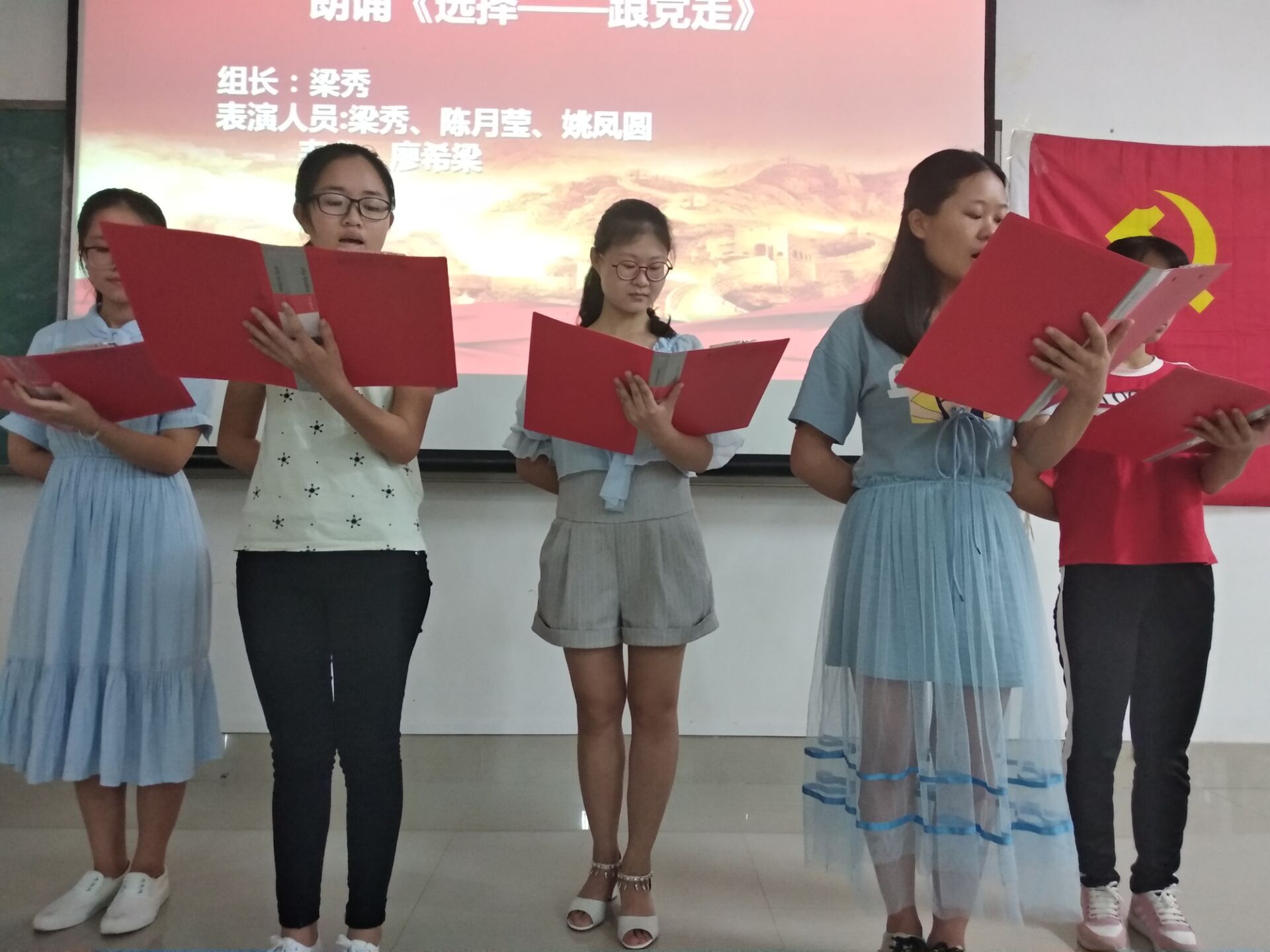 党员同志进行文艺表演,既有赞扬中国共产党激情洋溢的诗歌朗诵,又有优美动听中略带激昂的歌唱,展现当代大学生党员的良好精神面貌、表现励志向上的爱国热情,并以此来纪念中国共产党建党97周年。最后,纪念大会伴着《歌唱祖国》歌声中,隆重落下帷幕。