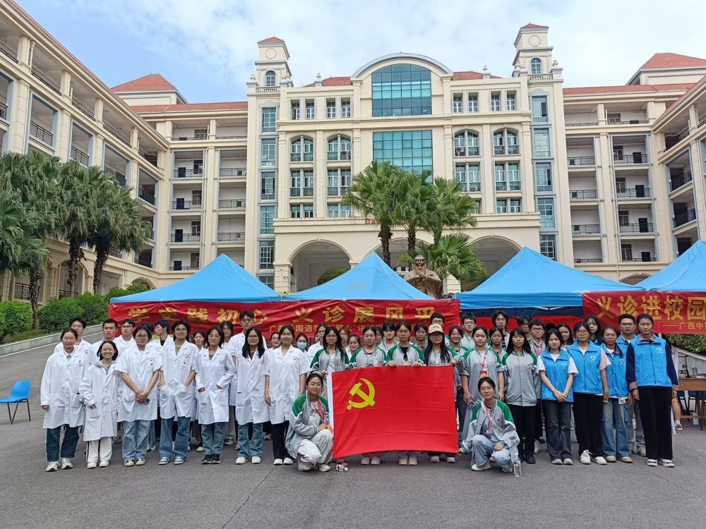 基础医学院学生第一党支部在南宁市青秀区广西外国语学院顺利开展“德馨韵医道,义诊泽万民”义诊志愿服务活动