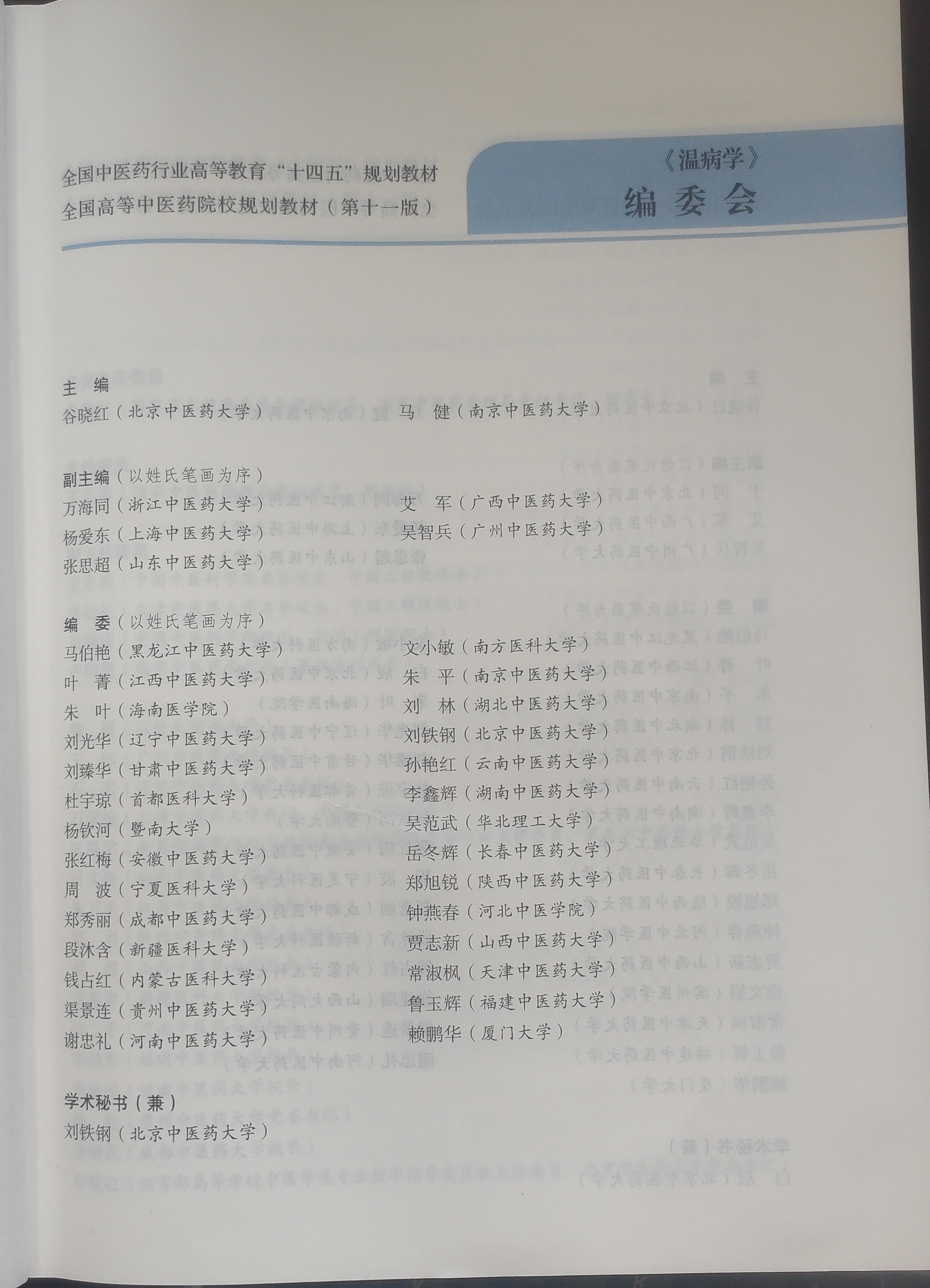 副主编教材——全国中医药行业高等教育“十四五”规划教材《温病学》