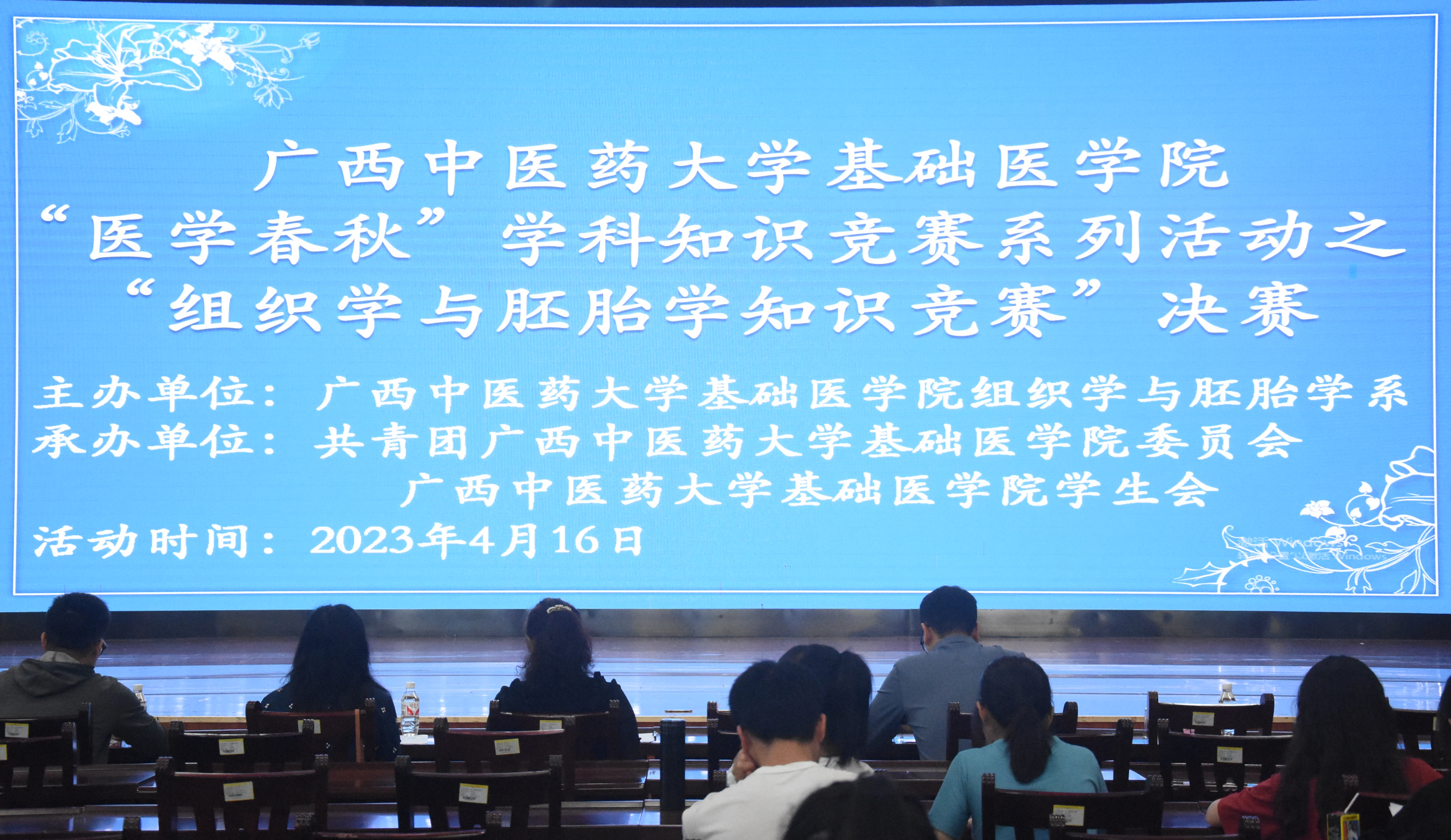 广西中医药大学基础医学院“医学春秋”学科知识竞赛系列活动之“组织学与胚胎学知识竞赛” 发布时间:2023-04-19 17:37:29 浏览次数: 次 【字体:小 大】 2023年4月16号,组胚教研室举办了广西中医药大学基础医学院“医学春秋”学科知识竞赛系列活动之“组织学与胚胎学知识竞赛”决赛,参赛同学们的表现可圈可点,可以看出同学们是下了功夫来复习的,真正做到了以赛促学。 分享到: 【打印正文】