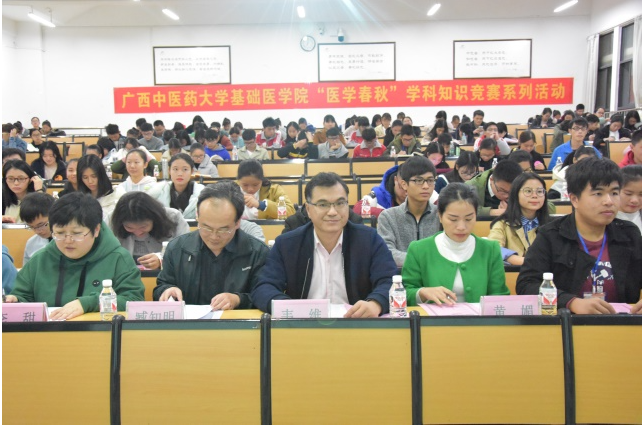12月21日晚,基础医学院于仙葫校区教学楼成功举办了“医学春秋”学科知识竞赛系列活动之“中医基础理论与中医诊断学知识竞赛”决赛,本次活动由基础医学院团委、学生会与基础医学院中基教研室和中诊教研室联合举办。广西中医药大学教务处副处长韦维老师,中医基础理论教研室臧知明老师,中医诊断学教研室李甜老师,基础医学院学生办公室黄媚老师出席了本次决赛。各参赛队伍及基础医学院各班级代表参与了此次决赛。