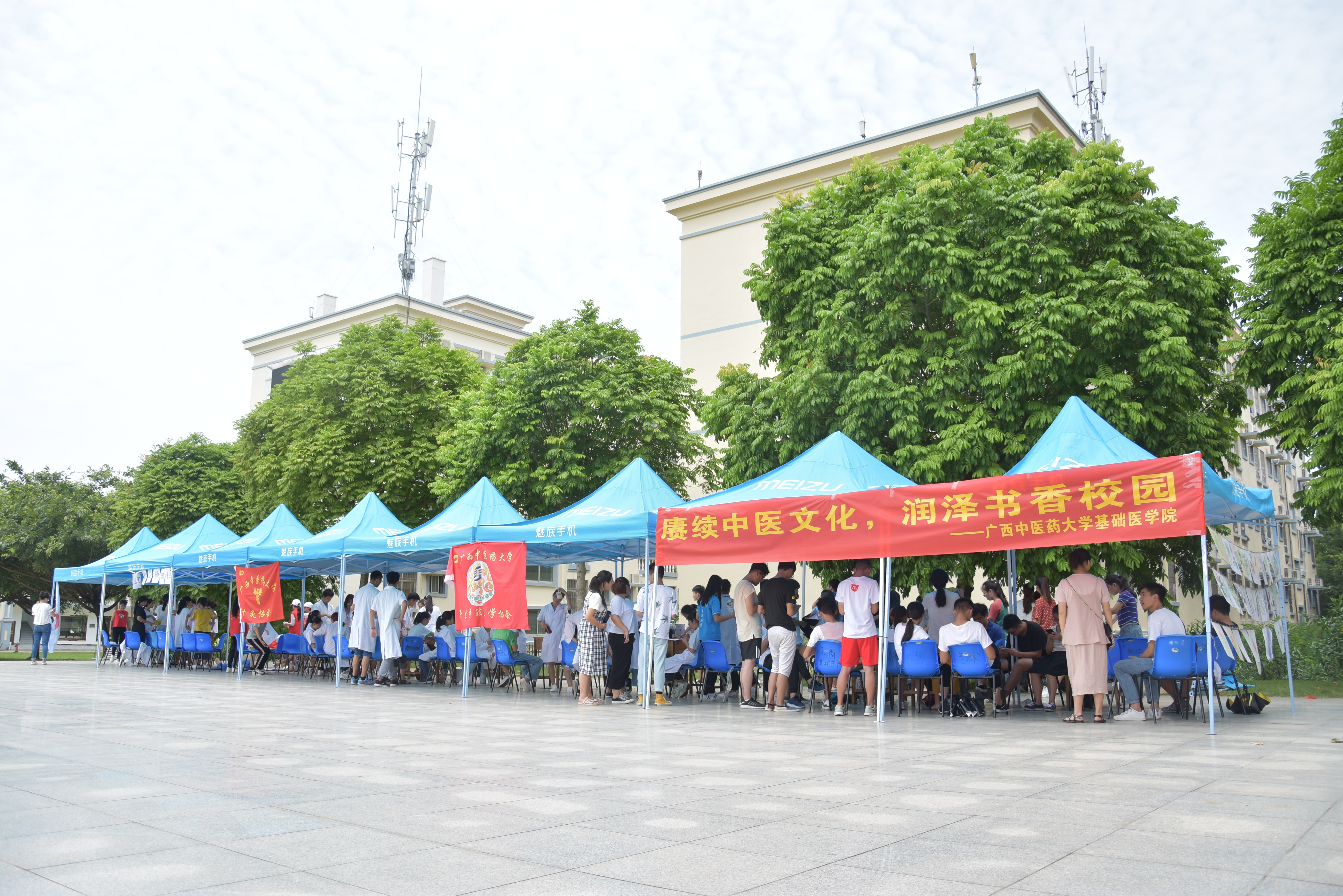 为了提高同学们的社会实践能力,弘扬十九大精神,广西中医药大学基础医学院于6月17日在广西外国语学院举办了“赓续中医文化,润泽书香校园”主题义诊社会实践活动。