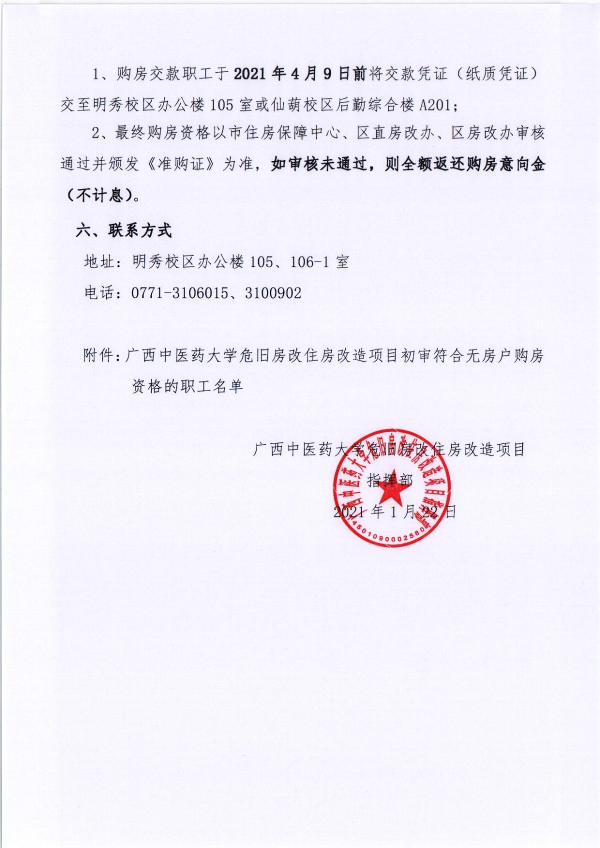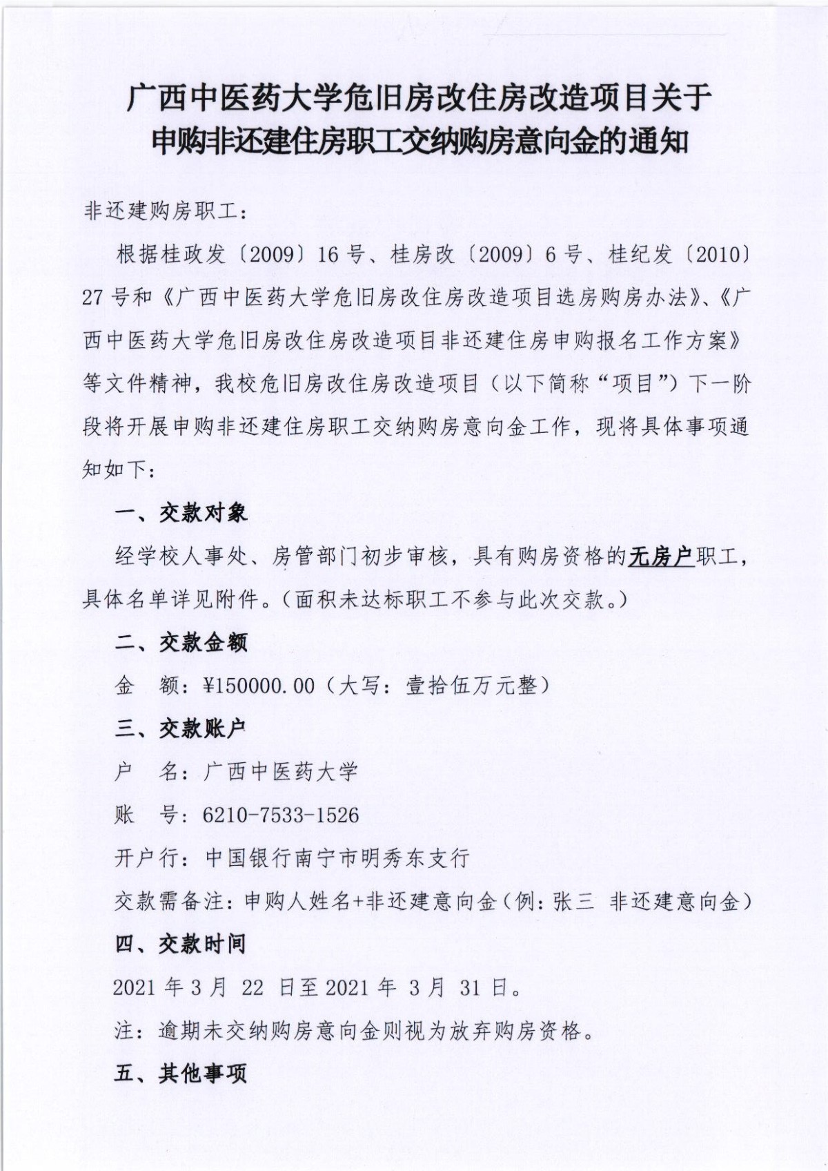广西中医药大学危旧房改住房改造项目关于申购非还建住房职工交纳购房意向金的通知 作者:项目办 发布时间:2021-01-22 17:29:54 浏览次数: 次 【字体:小 大】 通知!通知! 名单公布 建成后效果图 改造危旧住房, 建设美好家园。。 END 扫码关注更多项目信息 分享到: 【打印正文】