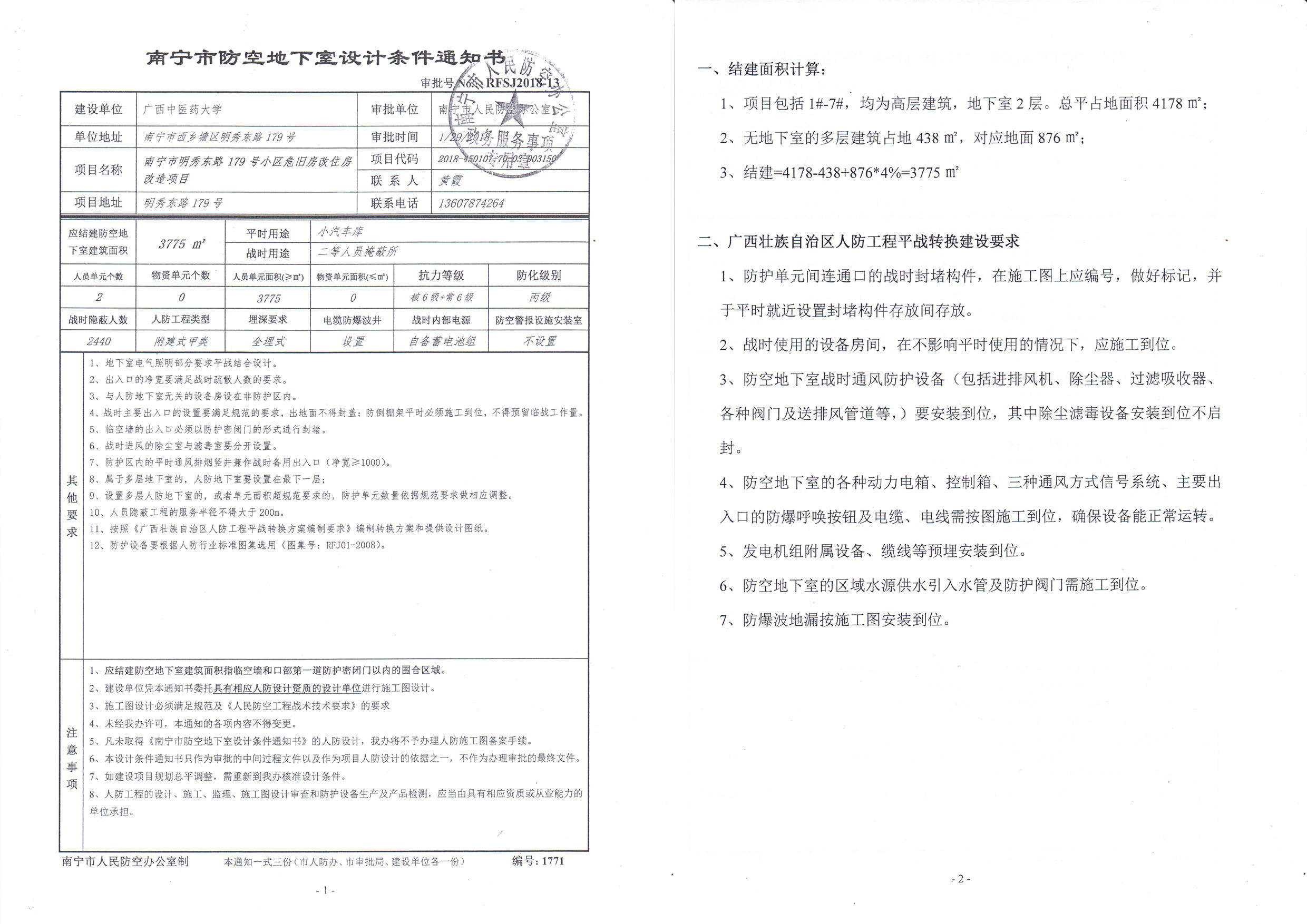 取得《南宁市人民防空地下室设计条件通知书》(审批批号No:RFSJ2018-13) 发布时间:2019-08-09 17:15:07 浏览次数:次 【字体:小大】 2018年1月29日,取得《南宁市人民防空地下室设计条件通知书》(审批批号No:RFSJ2018-13)。 分享到: 【打印正文】