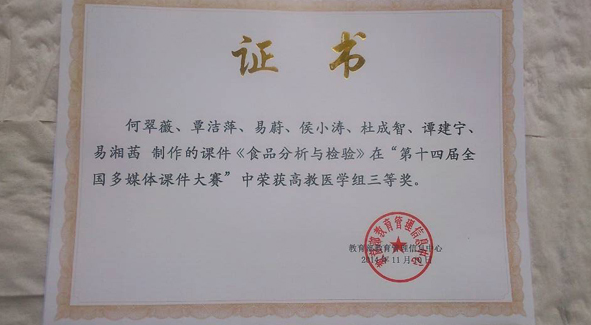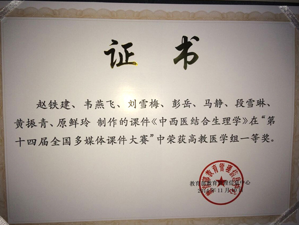 11月10日,第十四届全国多媒体课件大赛在北京落下帷幕,经过初审、复审、决赛的激烈角逐,我校参赛作品基础医学院赵铁建、韦燕飞等《中西医结合生理 学》荣获高教医学组一等奖,彭红华、员晓云等《中医美容技术——肥胖症》荣获高职理工组二等奖,药学院何翠薇、覃洁萍等《食品分析与检验》荣获高教医学组 三等奖。 全国多媒体课件大赛是由教育部教育管理信息中心主办的传统赛事,大赛每年举办一次,现已成为国内规模最大、质量最高、门类最全的课件比赛,今年共有来自全国各高等院校和中等职业学校的612所参赛单位计2817件作品参加了比赛。我校在本次比赛中取得的优异成绩,为进一步促进教师积极开展教学方法和教学手段改革,增强应用现代教育技术手段改进教学质量意识,提高制作运用多媒体课件能力和水平,起到了积极的推动作用。