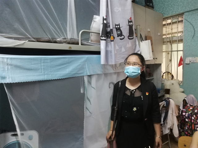 本次宿舍安全走访工作的对象主要是2017级学生,王瑜和蒋娴在走访宿舍时询问同学们的身体健康状况、生活情况,仔细了解同学们在学习和生活上的需求,耐心解答同学们的疑问。老师们认真查看学生宿舍是否存在用电安全隐患并督促学生们注意宿舍用电安全、不使用大功率电器,离开宿舍时一定要记得断电。同时老师们叮嘱同学们注意身体健康、劳逸结合,做好每天体温的测量工作。