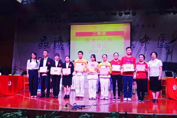 2015年11月23日, 广西中医药大学在仙葫校区小礼堂隆重举行2015年中医经典知识竞赛。我院弘中健康中心主任刘建航老师率领“医者仁心”代表队参赛并荣获团体总分第二名的好成绩。莅临本次大赛会场的有浙江中医药大学李俊伟副校长,山西中医学院马存根副院长,广西中医药大学罗伟生副校长,校团委书记王春花等22名领导、嘉宾和老师。