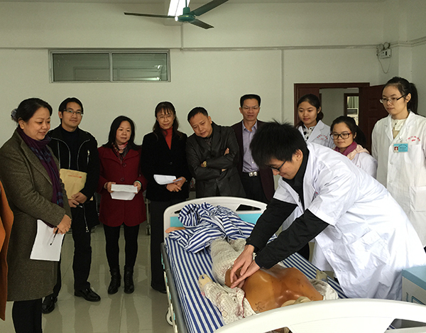 2015年12月8日至9日,广西中医药大学副校长吴琪俊带队前往贵港市人民医院、玉林市中医院、玉林市人民医院、玉林市骨科医院、北海市中医院开展非直属附院教学水平评估暨实习中期查专家巡回教学指导工作。我院党委书记唐友明、教务学生党总支副书记秦明芳、临床教学指导专家杨靖、潘汉升、欧阳国林以及学校教务处、教师发展中心、实习管理科、其他学院教学负责人等一行16人作为教学水平评估专家组成员参加此次检查评估工作。本次教学水平评估和检查主要模拟中医专业认证方法从教学地位、师资队伍、教育教学改革、教学条件、临床教学查房、临床能力考核等方面开展,以师生座谈、学生访谈、问卷调查等形式进行。