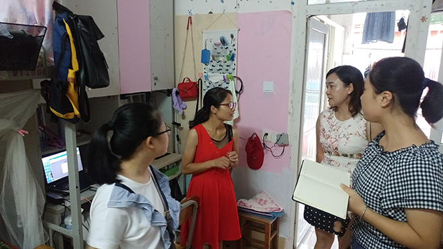 9月15日下午,教务学生部何颖书记、侯彬老师、苏莉莉老师及部分委员到2014、2015级学生宿舍走访,检查学生宿舍中电器使用以及电路安全等情况,对2015级同学们进行安全用电和消防安全的宣传和指导,并收集了同学们在住宿条件和物品报修等方面的建议及需求。
