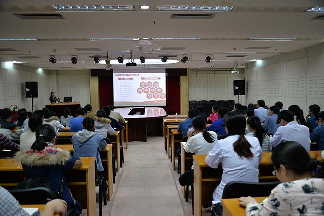 为深入贯彻学习党的十九大精神,更好推动党的十九大精神在教师、学生中的学习宣传和贯彻落实,11月29日下午,教务学生党总支在医院B座23楼第八教室召开十九大精神学习会议。医院党委副书记、副院长陈日兰出席会议并做报告,教务学生党总支书记何颖主持会议,教务学生部全体老师及规培医师党员、学生党员共107人参加会议。