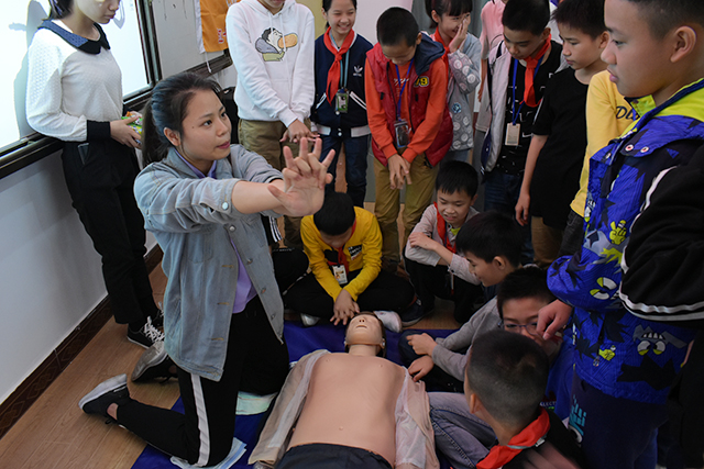 给孩子们作急救演示