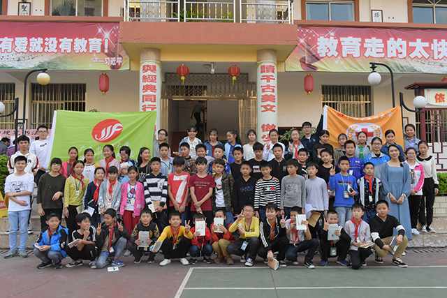 与孩子们合影