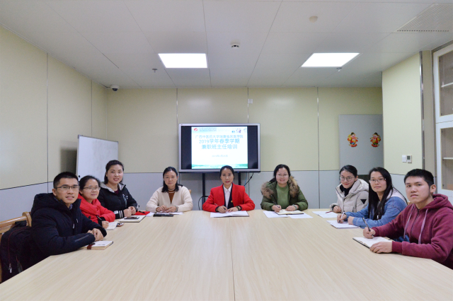 2月25日,在即将开学之际,为提高班主任的素养和职业技能,我院针对学生管理工作对2018—2019下学年班主任进行培训,并对表现优秀的兼职班主任进行表彰。活动邀请我院党委副书记、副院长陈日兰出席,学生科主任王瑜、教务学生党总支书记何颖和各年级辅导员与班主任参加活动。