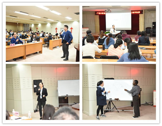 本次比赛由广西中医药大学国际教育学院副院长韦文朗、外语部副主任周锋、国际教育学院学生工作办公室主任陈斌、我院五官科学教研室主任李淑琳以及广西中医药大学首届全英文教学比赛第一名获得者吴媛媛担任评委。为增强英文课堂互动效果,体现全英文教学特色,本次比赛邀请了5名外籍留学生作为互动学生代表参加现场教学互动。活动由教务科主任汪国翔主持。
