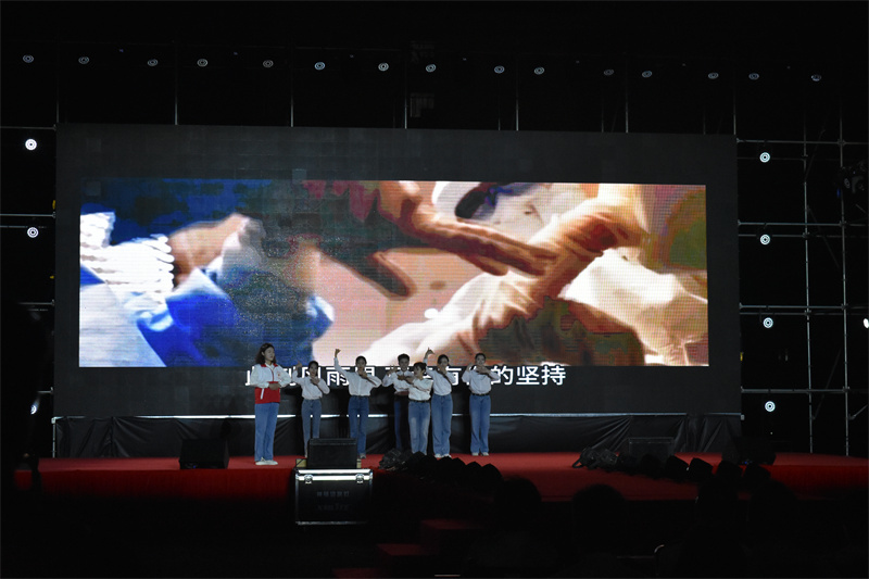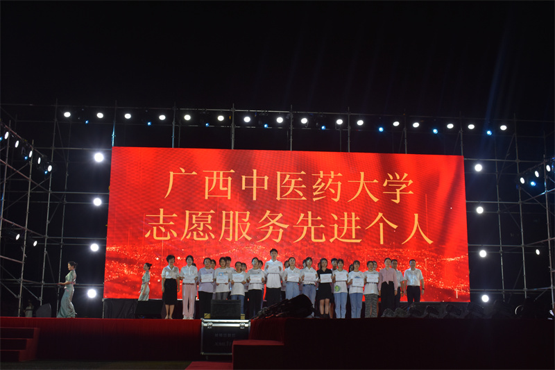 5月4日晚,广西中医药大学在仙葫校区田径场举办“青春践行二十大”五四优秀青年颁奖晚会,瑞康临床医学院学生团总支学生会以表演《平凡天使》手语节目献礼五四晚会。