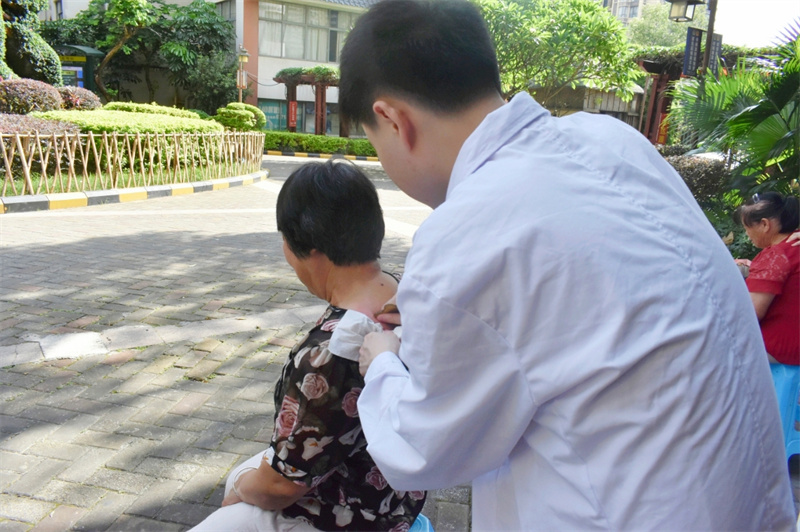 活动当天,志愿者们抵达社区服务地后,有序签到分组、布置场地,同时为居民提供量血压、手法按摩、艾灸、刮痧等健康服务项目。随着活动的进行,居民们纷纷前来体验,各服务区域气氛温馨和谐。在血压测量区,志愿者为居民进行细致的血压检测,耐心讲解日常血压管理的注意事项和预防保健知识;推拿区的志愿者运用娴熟的手法为居民缓解肩颈、腰背等部位的疲劳不适,并根据每个人的身体状况给予个性化的保健建议;艾灸区域前,志愿者在缕缕艾香中,深入浅出地科普艾灸养生原理,让中医文化深入人心;刮痧区内,志愿者手持刮板沉稳操作,为居民疏通经络,泛红的痧痕映衬着舒爽的笑容,传统中医疗法赢得居民们的阵阵赞叹。