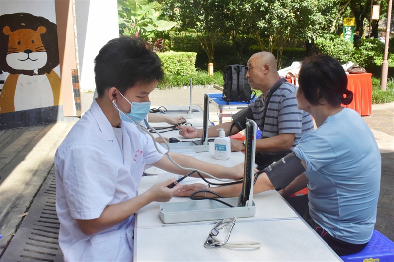 为积极贯彻落实“健康中国”战略,切实提升群众健康素养,增强居民疾病预防意识与自我保健能力,6月7日上午,瑞康临床医学院志愿服务部在兴宁区保利·山水怡城社区精心组织开展了“健康关乎生命,爱心温暖人心”义诊活动。20 余名满怀热忱的学生志愿者化身健康使者,为社区居民送上了独具中医特色的医疗服务。