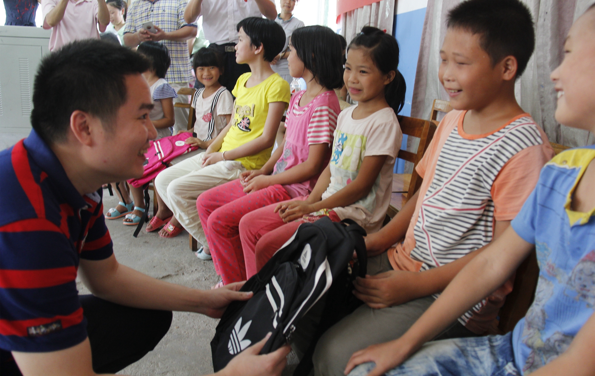 杨删副书记赠送留守儿童书包