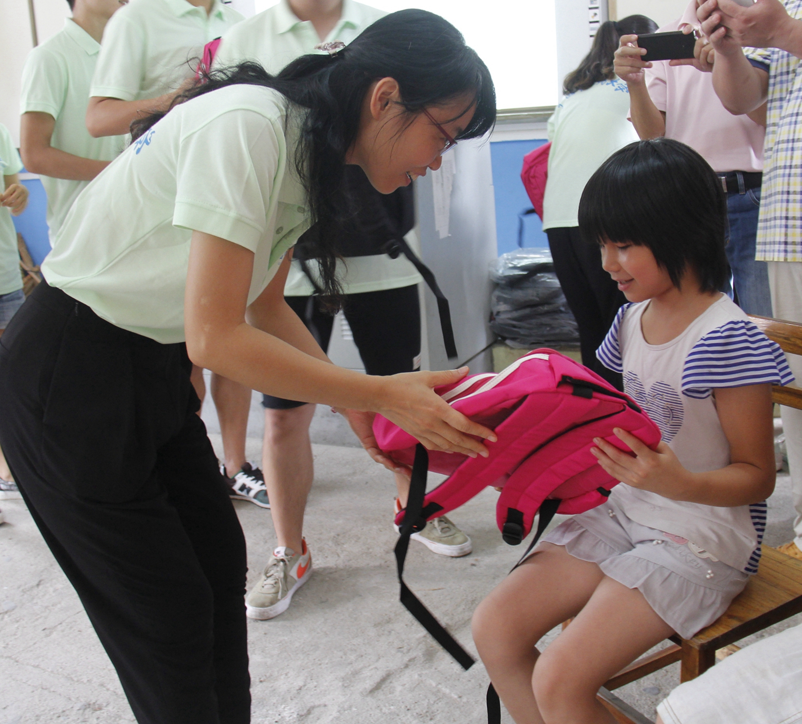 校团委王春花书记赠送留守儿童书包