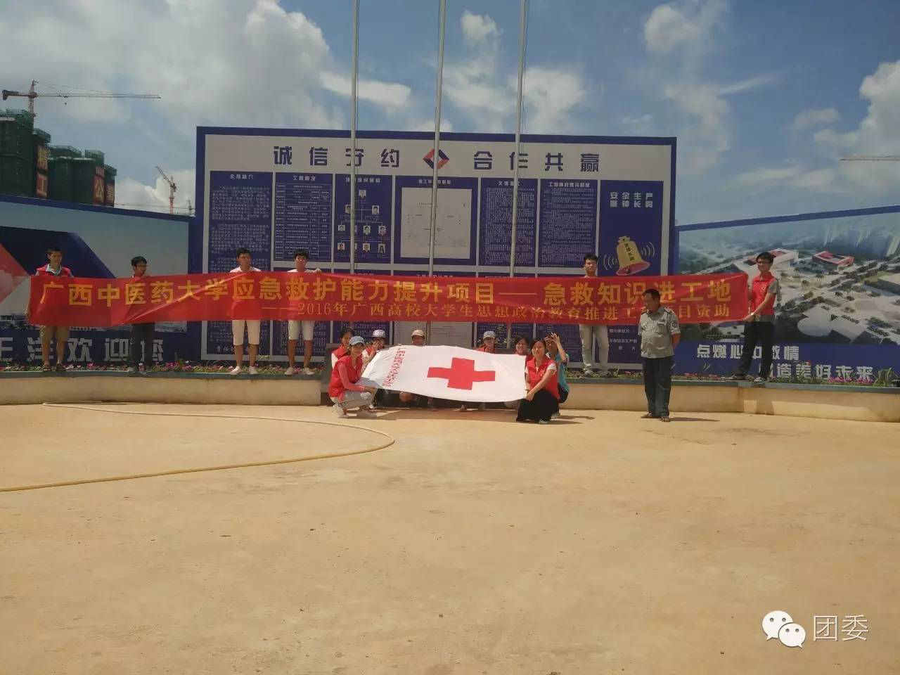 红十字队员们于7月16日早整队出发,前往目的地南宁市武鸣区渡头社区和正洋建设工地。16日早,队伍经过两个小时的车程首先到达南宁市武鸣区,经过中午的整顿和准备,下午前往正洋建设工地开展的实践活动,利用晚上的时间对下午的活动进行总结,指出活动中的不足并提出解决方法,并在第二天早上渡头社区的实践活动做出了改进,给社区的居民提供了更好的志愿服务。队伍于17日下午返校。