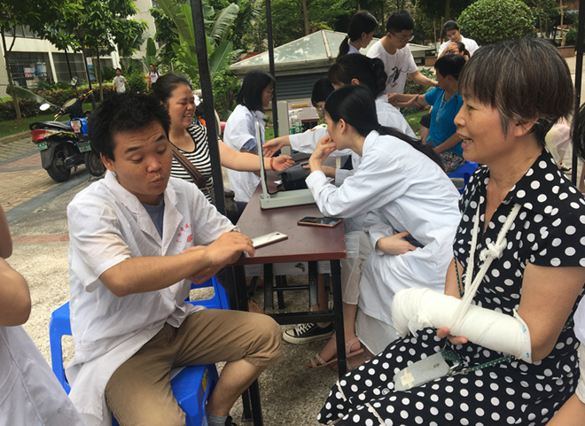 2019年7月13日上午08:00,2016级中医学二班西伯利亚狼实践队21名同学,在广西中医药大学明秀校区汤歌苑集合,在王佳林老师及负责人的集合讲话之后,同学们就前往目的地—广西南宁市明秀南社区惠众社会工作服务中心。在进行了场地的布置之后,我们便开始了义诊活动。义诊活动共分为三个版块,第一是量血压,在这个区域,同学们为居民测量血压之后,并介绍相关防治知识,而后引领群众去另外的两个区域。第二个区域是艾灸,第三个区域是手法推拿。在艾灸与手法推拿区域,同学们与群众积极艾灸及手法推拿,并与其沟通,宣讲相关医学知识,为居民们带来了福祉。本次活动,同学们也收获了很多,锻炼了自身的技能,也服务了群众,可谓是一举两得。同学们也必定会在将来的学习生活中,更加勤奋学习,以更好地服务人民群众。在今天的活动结束之后,老师同学们会同社区负责人进行合影留念!
