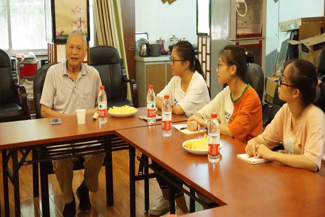 2019年7月12日,由广西中医药大学壮医药学院团委学生会学生干部组成的壮医药学院拾薪铸红魂实践队在南宁市植物路军休所开展了第一阶段暑期社会实践活动,即开展相关主题座谈会。此次座谈会有幸邀请到王世超、邓道生、程传善、谭开先、黄建新、李志光六位德高望重的退休干部出席,为实践队员们讲述珍贵经历,并给予谆谆教诲。