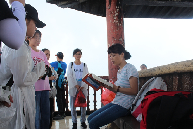 王柳萍老师于圣堂山顶峰主持读书会