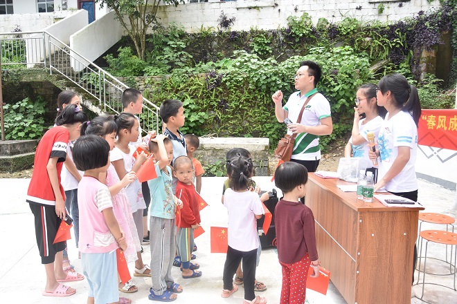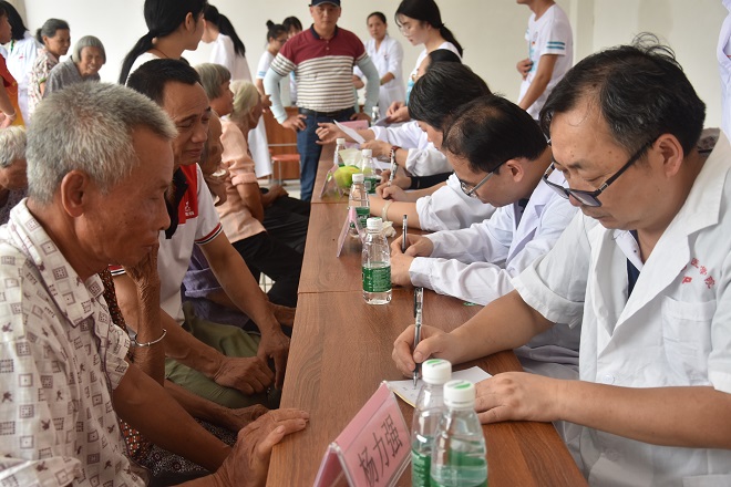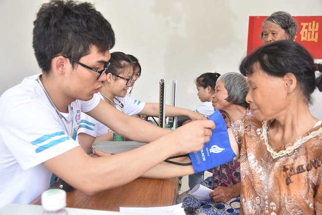 7月12日,服务队来到了广西南宁市隆安县南于镇联伍村,在那里有很多留守儿童、孤寡老人。专家医师对乡亲们进行义诊,学生们给乡亲们量血压、按摩以及给孩子们准备了各种各样的活动--纸笔传情(写下自己的愿望及梦想)、太极剑、太极拳表演、游园游戏,还给孩子们宣讲建国70周年、五四运动100周年文化,让他们感受到了社会的温情、祖国的美好。