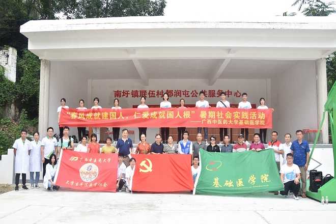 本次暑期社会实践活动由基础医学院党委书记龚名师、学院院长林江、学院副院长邓鑫、专家教授蒋筱、杨力强、祝美珍、团委书记和卫宾以及辅导员张翼鹏、陈诚带领共青团广西中医药大学基础医学院委员会、广西中医药大学基础医学院学生委员会、广西中医药大学大学生手法医学协会开展。