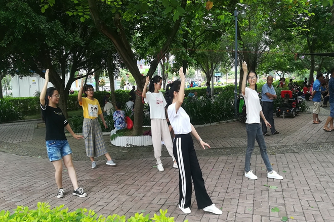 2019年7月15日,广西中医药大学“健康热线”战队成员一行7人赴南宁市青秀区东方广场开展了以“青春心向党,建功新时代——预防肿瘤,健康生活”为主题的暑期社会实践活动,并取得圆满成功。此次活动形式多种多样,主要采用派发传单和健康知识宣传手册、线上和线下问卷调查、面对面肿瘤知识宣讲、教习健康养生健身活动等方式。
