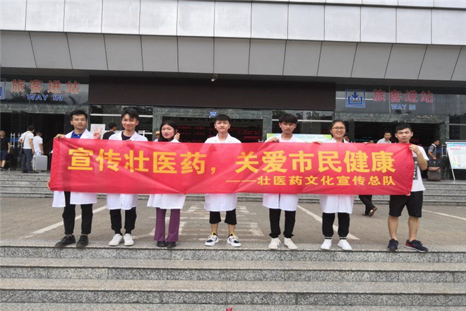 为了守护大家的身体健康及更好的提供医疗保健服务,2019年7月23日上午,广西中医药大学壮医药文化宣传总队在江南客运站前开展了宣传活动。此次宣传活动的主要内容有发放宣传材料、量血压、脉诊、手法治疗及药线点灸。