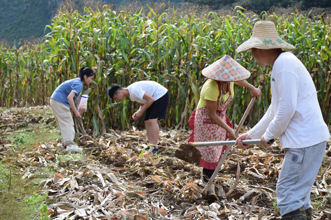7月15日,伴着细雨,志愿者们挨家挨户上门宣传,向村民讲解禁毒知识,村民也表现出强烈的兴趣。不仅如此,志愿者还下到地里向正在劳作的村民们宣传,给他们讲解禁毒知识的同时,也帮村民们播种玉米,贴近村民的生活,村民对志愿者的表现称赞不已。义诊进行之时,禁毒知识宣传也在进行着,一部分志愿者给前来义诊的村民发放禁毒调查问卷,另一部分志愿者则上门进行走访,了解村民们对禁毒知识的掌握程度。义诊工作与禁毒知识宣传交叉进行,村民们享受着义诊带来的福利的同时,也方便志愿者们普及禁毒知识。