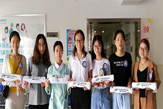 定制“广西中医药大学研究生学院情暖夕阳公益小分队”logo毛巾现场留念