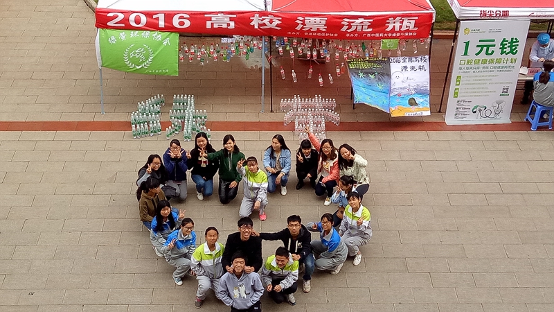 漂流瓶活动于2016年11月11日在广西中医药大学仙葫校区五合食堂举行。这个活动是以收集废旧空瓶为目的,有效的回收校内空瓶,通过对空瓶的合理利用,利用互联网做到漂流瓶的形式,让高校的学生有更多相互交流的机会,并以此为契机把环保理念推入到更广阔的层面。