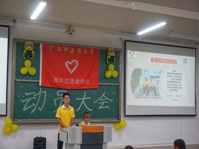 又是一年新生季,为了做好动员广大新生积极加入青年志愿者行列之中,2017年10月9日,广西中医药大学青年志愿者协会于仙葫校区教学楼1-101教室举行了以“朝阳之光,照亮迎新之路”为主题的第二十二届动员大会。