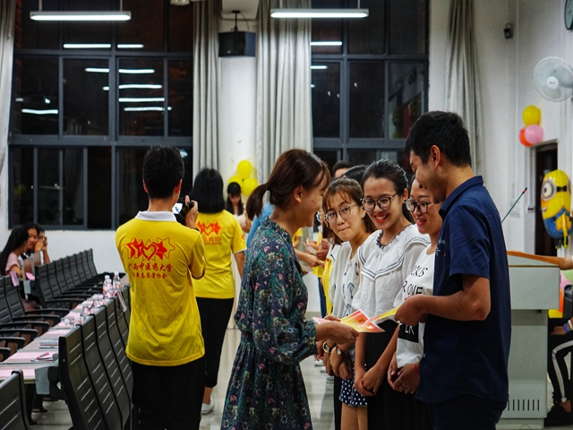 16:00,小伙伴们就开始用气球和彩带装饰教室,让会场变得更温馨。19:00在嘉宾和会员入座后,动员大会就正式开始了。莅临本次大会的嘉宾分别是校团委陈晓东老师,校外社团代表以及校兄弟社团代表等。在大会开展中,校团委陈晓东老师进行了讲话,向学生们介绍了广西中医药大学青年志愿者协会的发展历程,展现了协会的荣誉成果,并声色并茂地解释青年志愿的意义与责任。同时,现任会长莫兹也就协会发展成果进行了详细的讲话,并从青年志愿者协会工作内容开展,向入校新生解答协会部门职能和协会活动文化。大会还有令人激动有奖竞猜环节,小伙伴们十分积极,纷纷高举起手竞答,现场气氛达到高潮。在这之后,分别进行了优秀志愿者和优秀负责人颁奖,最终在小伙伴们精彩的手语表演中完美的落下帷幕。