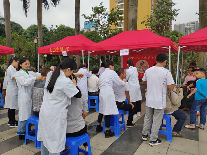 志愿服务源于心,献出爱心在于行,为了迎接12月5日国际志愿者日的到来,2018年12月2日,由共青团南宁市邕宁区委员会主办,我校青年志愿者协会承办,联合我校大学生手法医学协会、针灸协会和红十字会在邕宁区新兴广场开展了以“医路有你,志愿前行”为主题的义诊活动。