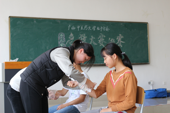 2019年11月23日,广西中医药大学大学生红十字会急救大赛决赛在小礼堂举行。本次比赛邀请了两位老师和各个兄弟社团前来观看比赛。