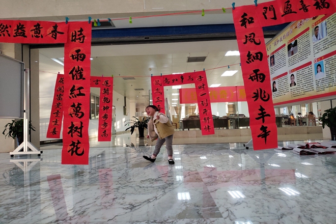 广西中医药大学大学生书画艺术协会送春联公益活动在学校各领导的支持下已成功举办多年,受到了广大师生的热烈欢迎和喜爱。今年免费送春联活动更是盛况非凡,其中,仅送出的对联就多达630幅,现场剪纸和体验写春联等互动活动参与规模也再创新高。斗方福,红对联,趣剪纸,一笔一墨展示了中华民族书法的艺术魅力,宣传弘扬了中国传统文化,更表达了我校师生们对美好生活的向往和期待。