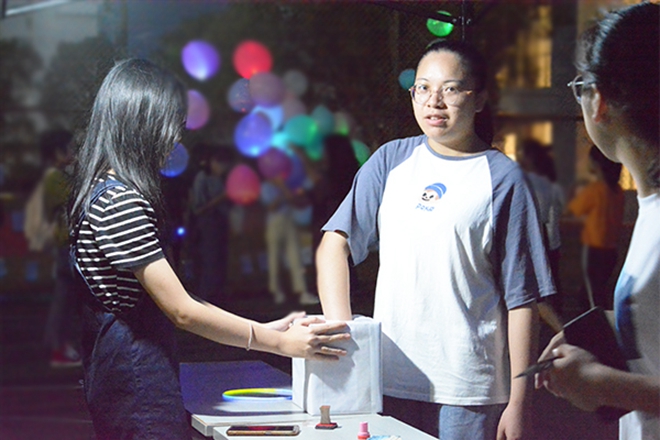 2019年9月11日晚,由我校学生委员会举办的以“中秋良夜赏花灯,张灯结彩迎中秋”为主题的中秋游园活动在大学生活动中心旁边的篮球场顺利举办。