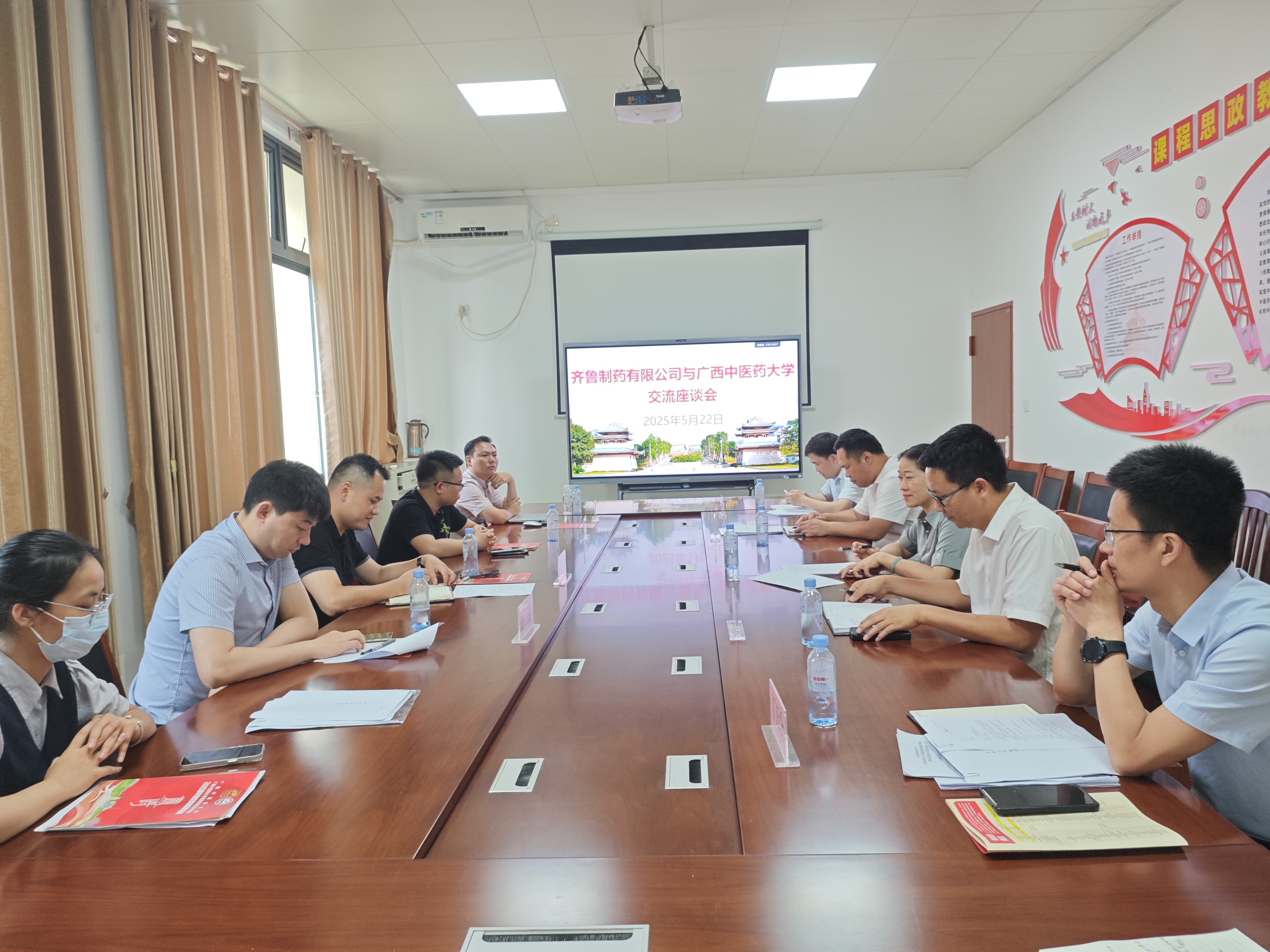 2025年5月23日上午,齐鲁制药有限公司沈之坤一行5人到我校仙葫校区参观交流。座谈会由广西中医药大学发展规划处(学科建设办公室、医院管理与社会服务处)处长莫雪妮主持。