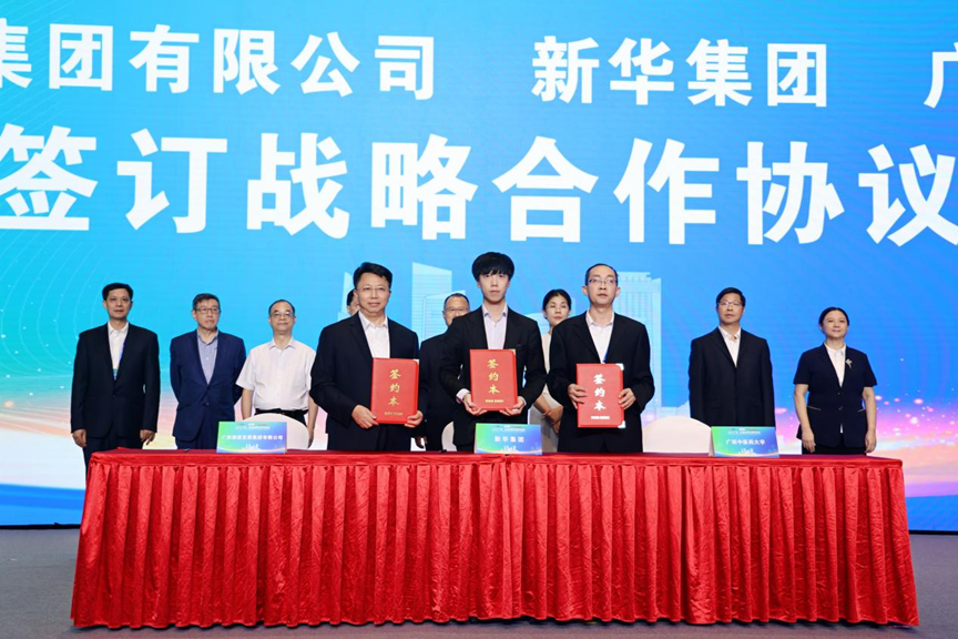 会上,唐振宇代表学校与香港新华集团、广西旅游发展集团有限公司共同签署战略合作协议,三方共同致力于整合“中医药+文旅+商贸”资源,打造集中医诊疗、养生体验、药膳餐饮、文化展示、康养旅游于一体的国际化品牌项目,标志着中医药产业与文旅融合出海进入创新发展新阶段。