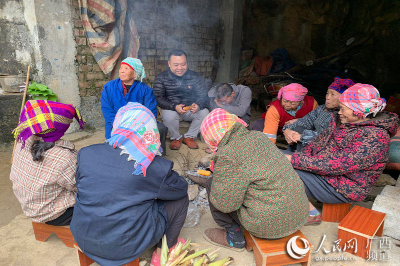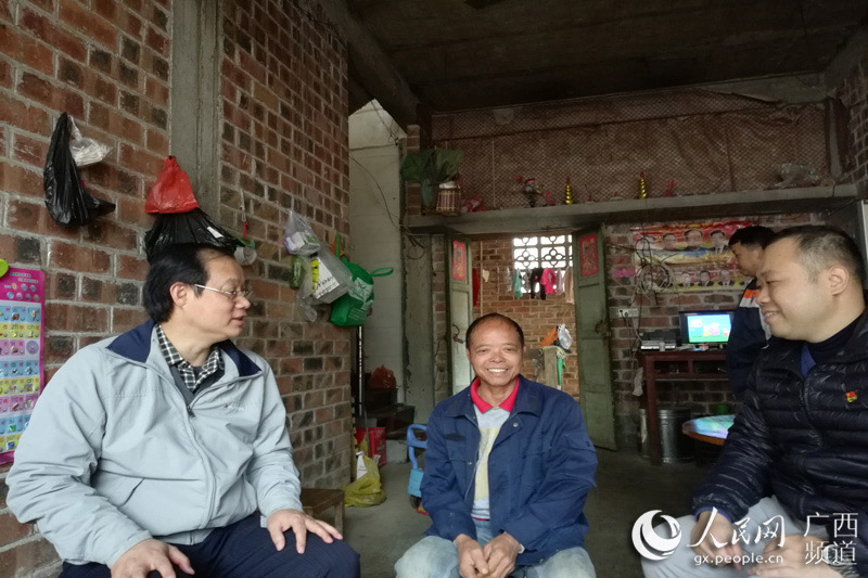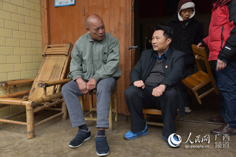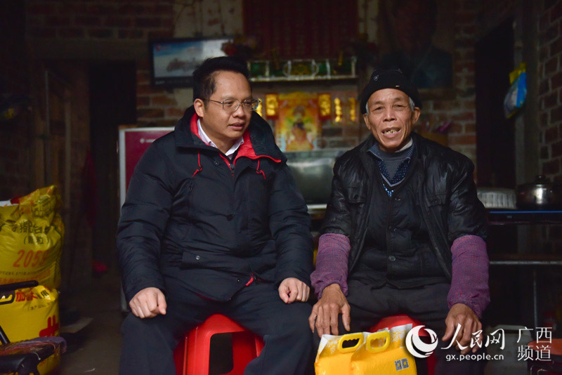 广西中医药大学党委副书记庞宇舟(右)到念潭村慰问贫困户