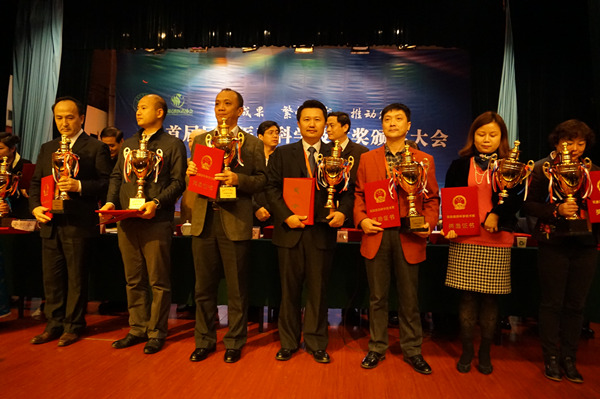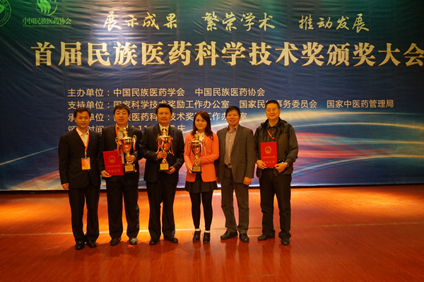 20141124日,首届民族医药科学技术奖颁奖大会在重庆召开,来自各地的蒙、藏、维、回、壮等20多个少数民族的获奖项目负责人、获奖个人和企业代表等600多人参加了颁奖大会。广西中医药大学庞宇舟教授等获奖项目的代表以及科技处、壮医药学院、瑶医药学院领导等参加了本次颁奖大会。
