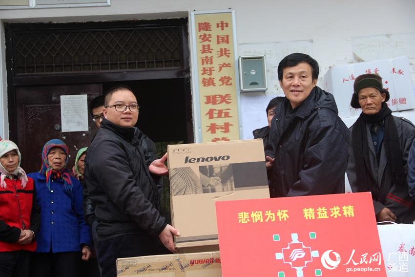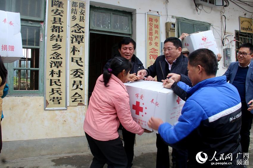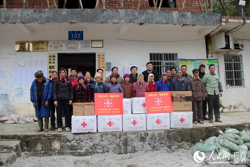此次慰问,广西中医药大学及第一附属医院、附属瑞康医院等单位部门共为隆安县8个扶贫村80户贫困家庭送去了温暖。(何世全)