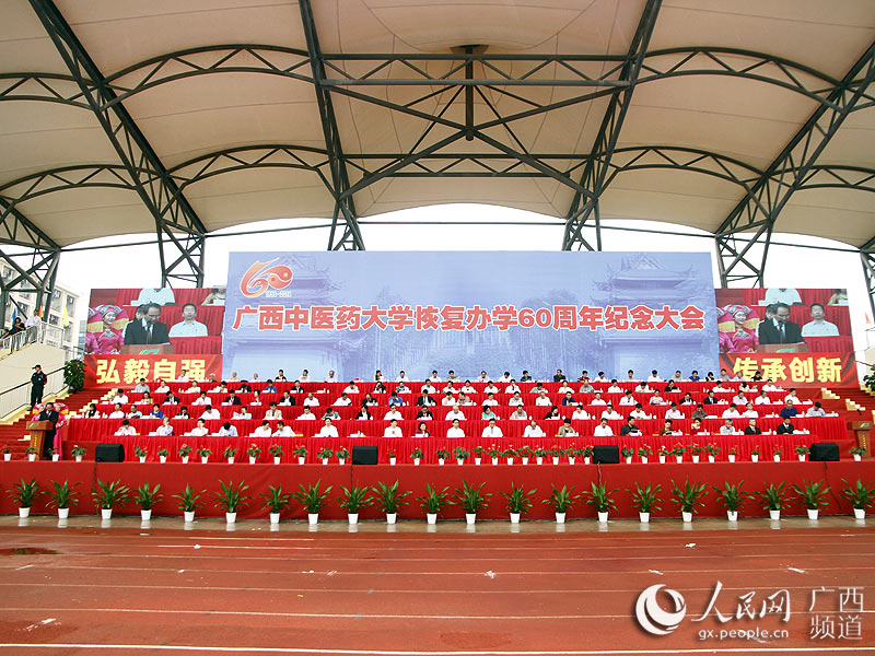 广西中医药大学恢复办学60周年纪念大会现场(张红璐/摄)