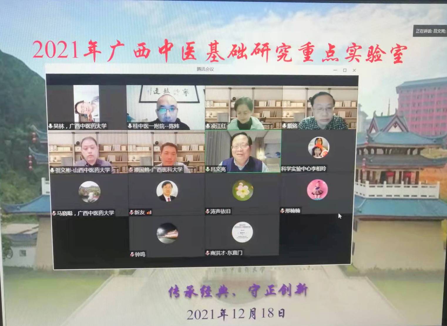 2021年12月18日-12月19日,第四届中医传统学术理论传承创新与应用研讨会暨2021年广西中医基础研究重点实验室学术年会在广西中医药大学仙葫校区举行,会议以“传承经典、守正创新”为主题。